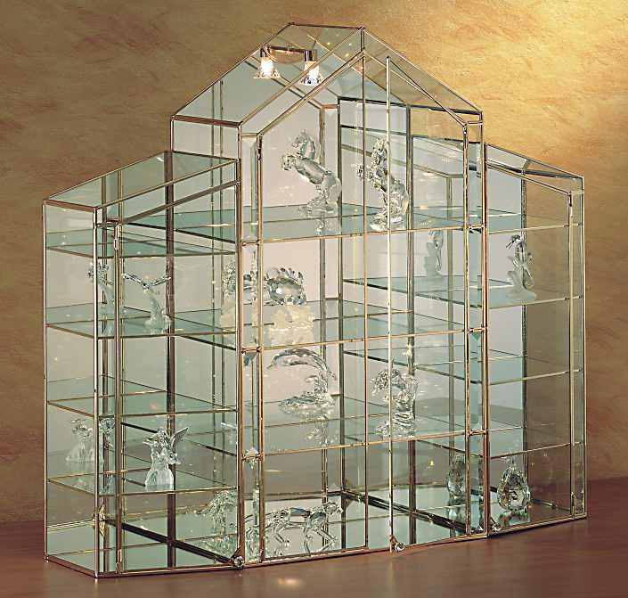 Nos vitrines sont des lieux lumineux, crées pour présenter vos objets de valeur, comme par exemple les Swarovski et pour en même temps les protéger. Ces bijoux, faits à la main donnent satisfaction aux exigences les plus élevées. Les profiles sont soit plaqués or 24 K ou plaqué nickel haute brillance. Les vitrines collectionneurs existent en différentes tailles. La majorité de ces vitrines en cristal sont fermées avec une porte. Si vous le souhaitez toutes les vitrines son disponible avec une illumination halogène de haute qualité. Depuis des années les collectionneurs des figurines Swarovski préfèrent nos vitrines. Sur nos pages vous trouvez également des informations supplémentaires sur d’autres types de vitrines comme vitrines de présentation produit, systèmes d’étagères et ‘autres.